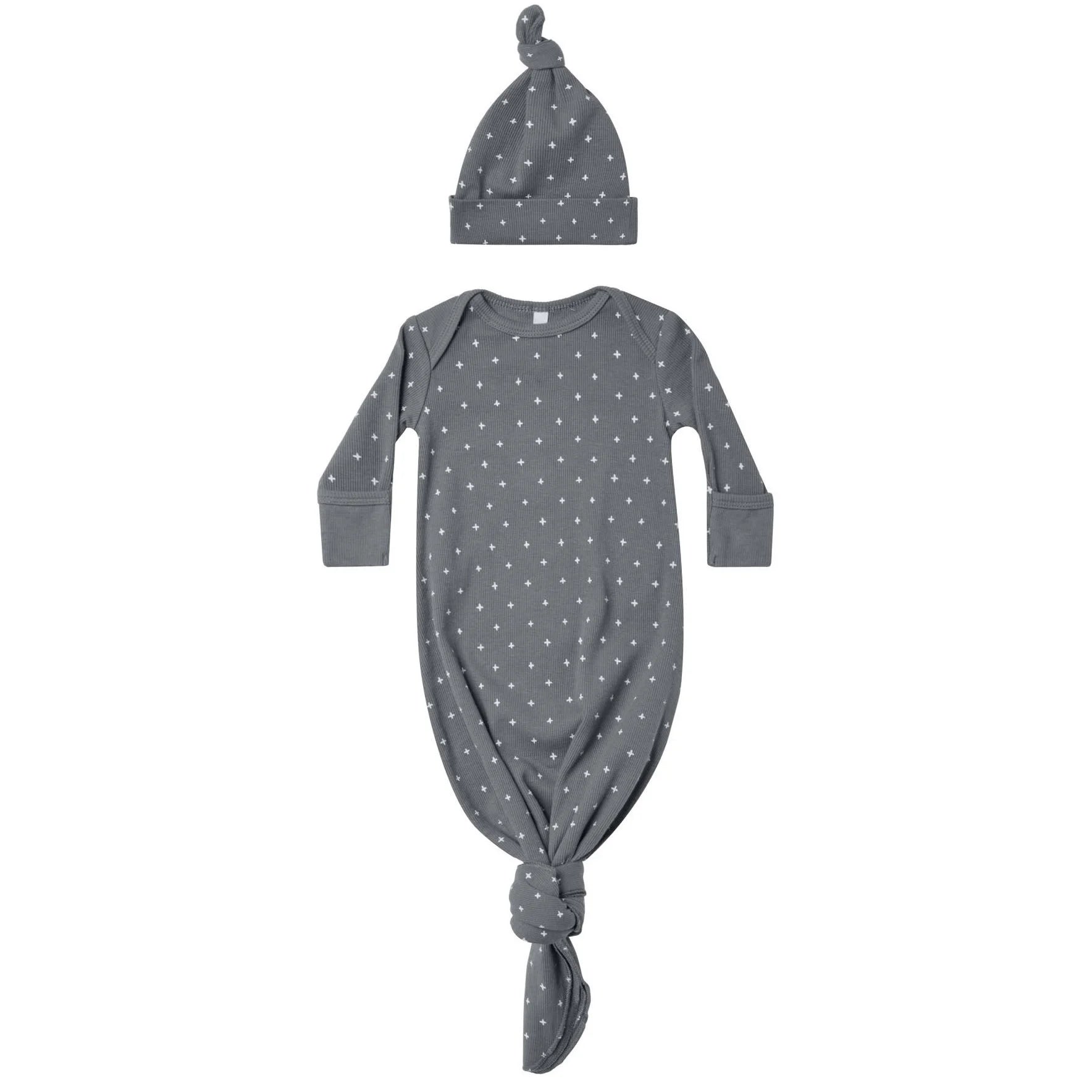 Dormeuse indigo et chapeau noué ajustable assorti de marque Quincy Mae. 100% Cotton biologique.