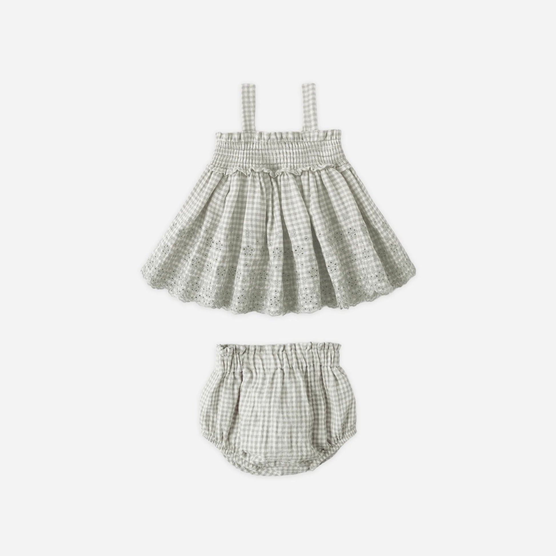 Smoked Top + Bloomer Set Sage Gingham | Quincy Mae