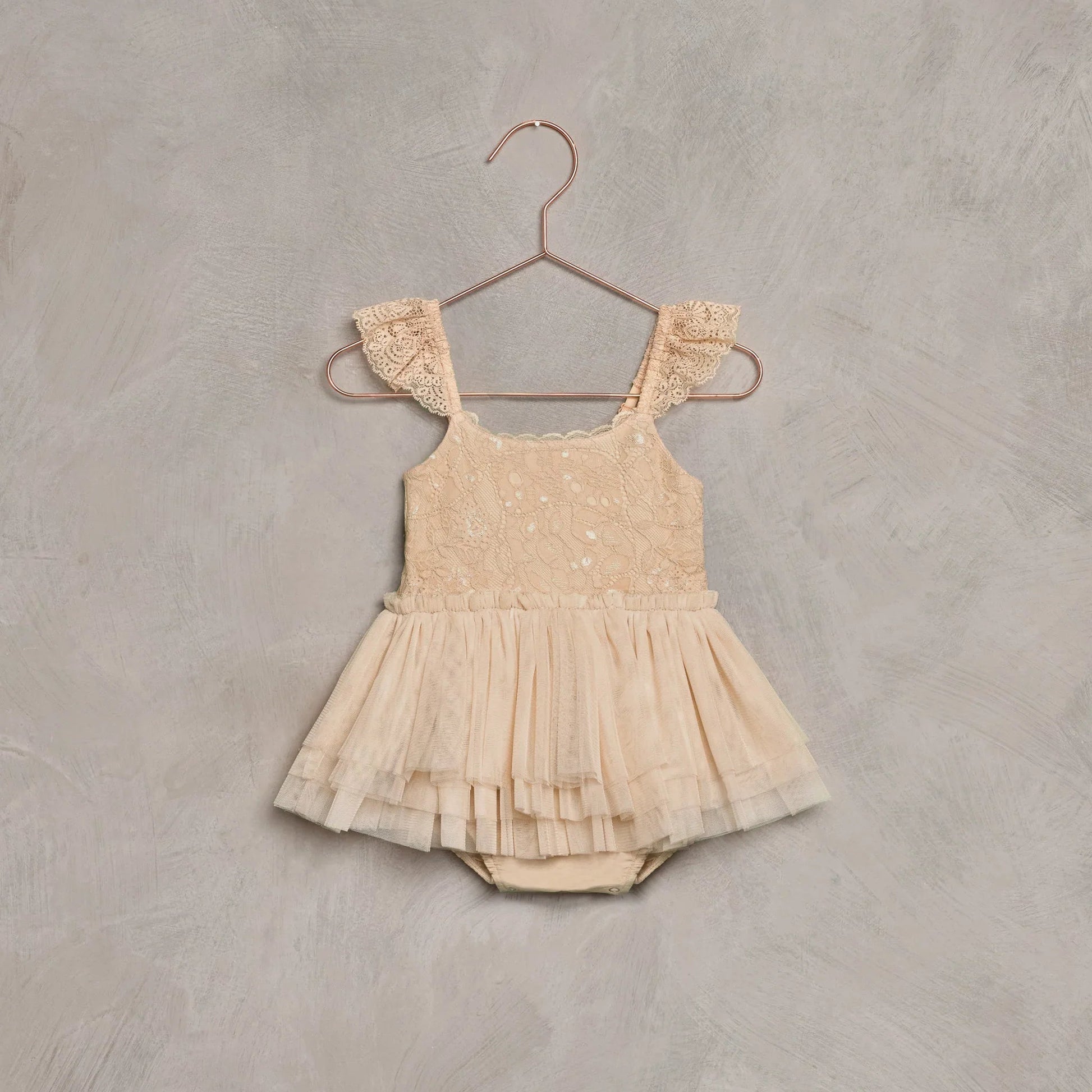 Le romper à tutu Camilla présente un corsage recouvert de dentelle et une jupe ample en tulle à volants superposés.